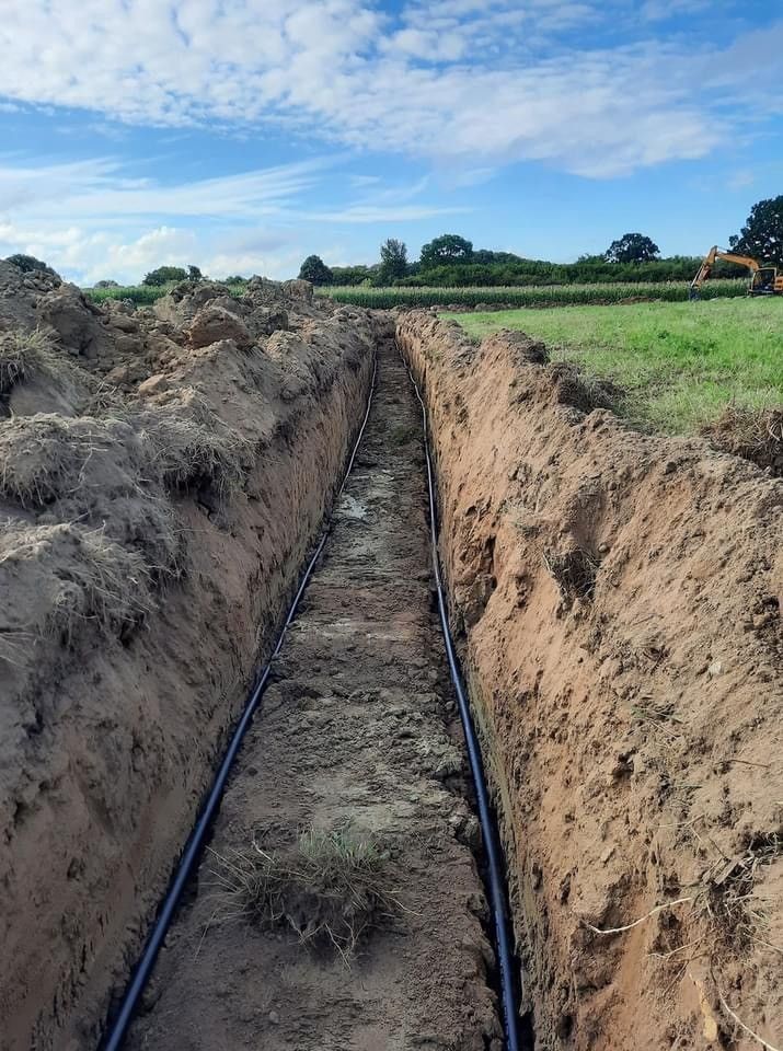 Når spyddet er trukket igennem jorden, skiftes der til slangenedlægger, som trækker slangen ned i den ønskede dybde. Det tager ca. 4-5 timer at nedlægge et anlæg på 400 meter.